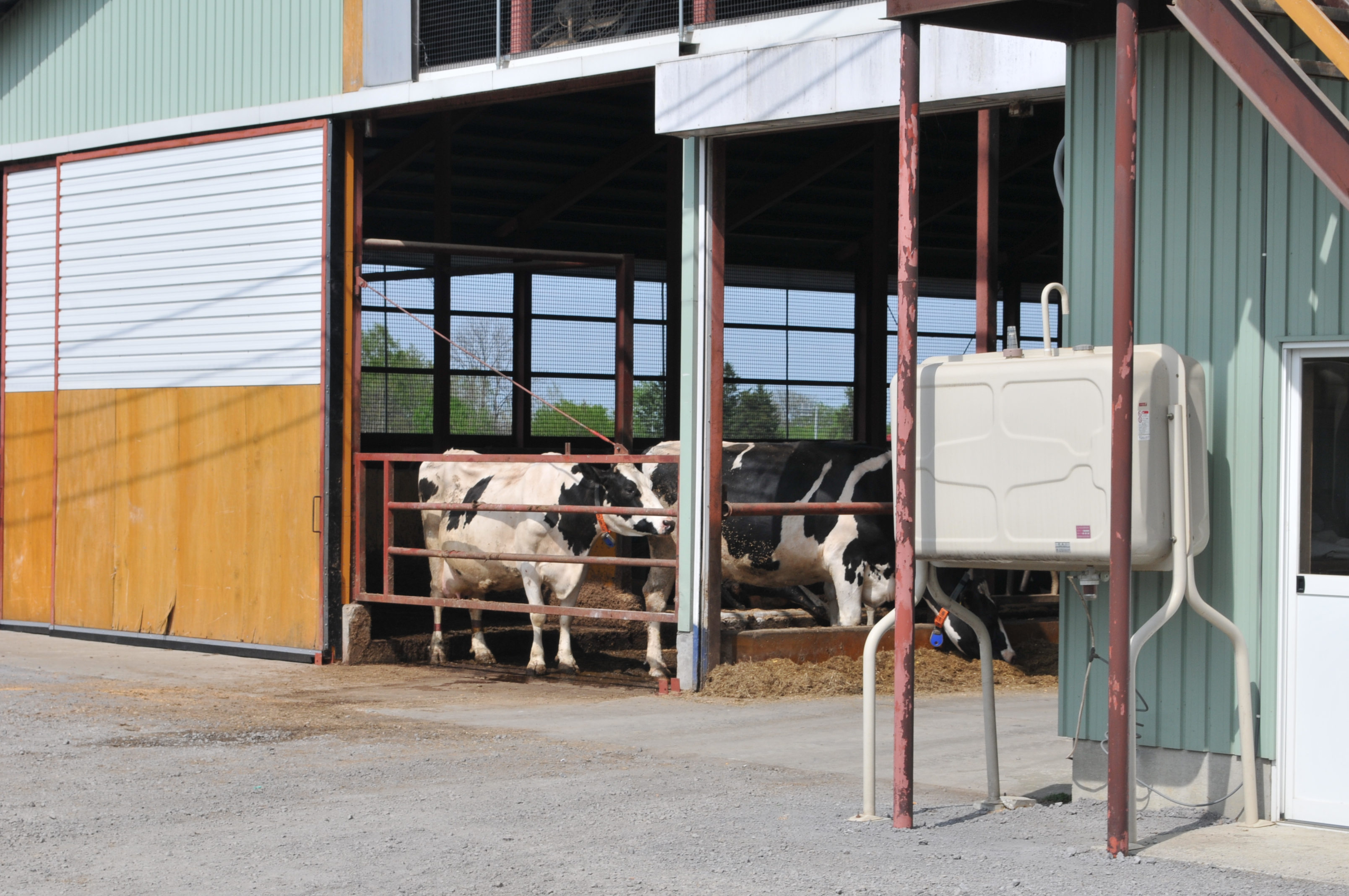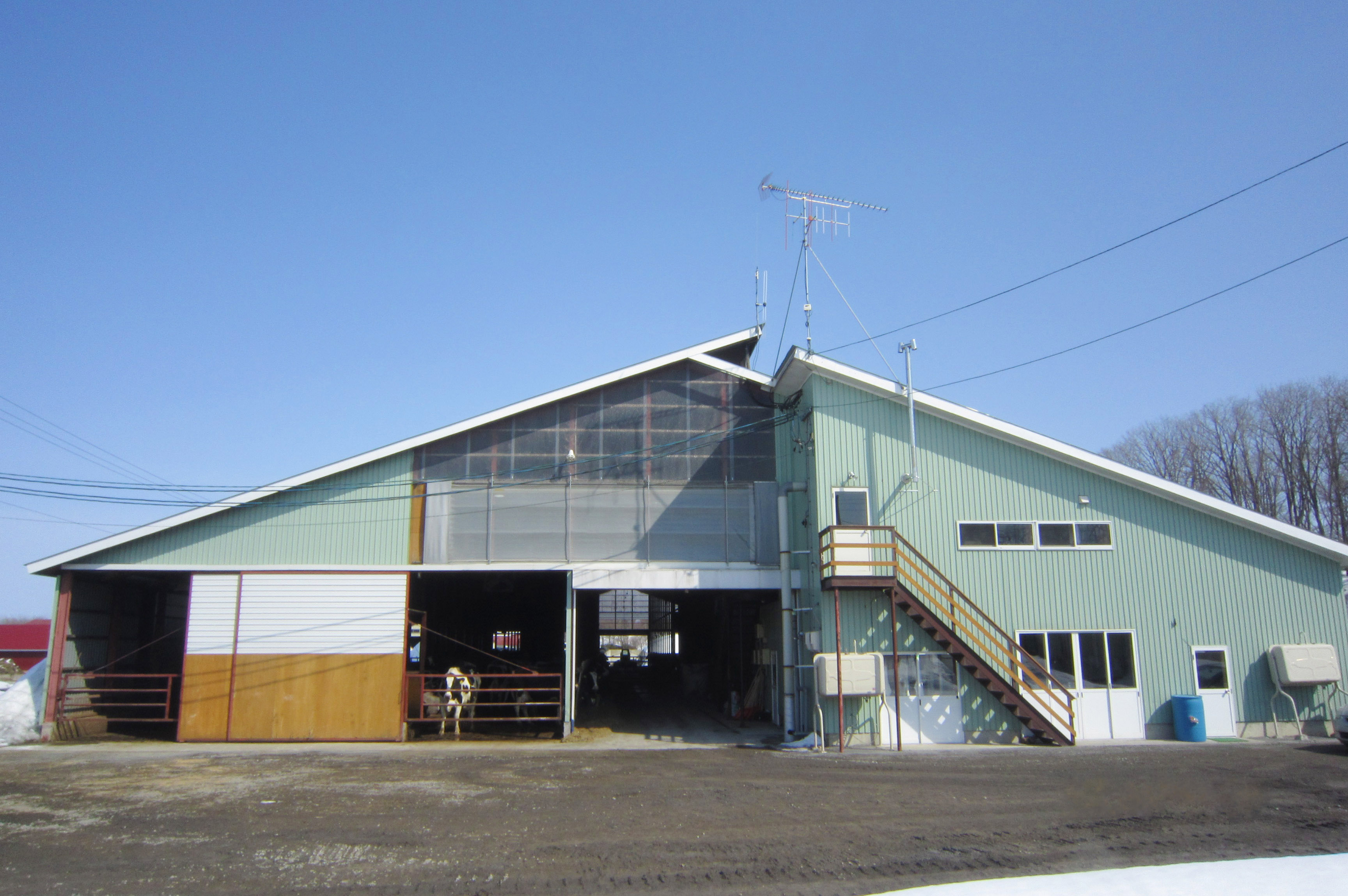 施設としては堆肥(たいひ)舎、育成牛舎、バンガーサイロ、搾乳牛舎などがあります。その周りを広大な牧草地が囲みます。搾乳牛舎では搾乳作業のほか、搾乳牛への給餌なども行います。搾乳作業は10頭ダブルのミルキングパーラーで行います。同時に20頭を搾乳する事が可能で、約2時間ほどで200頭を搾乳します。搾乳は朝5:00~と夕方は16:00~。