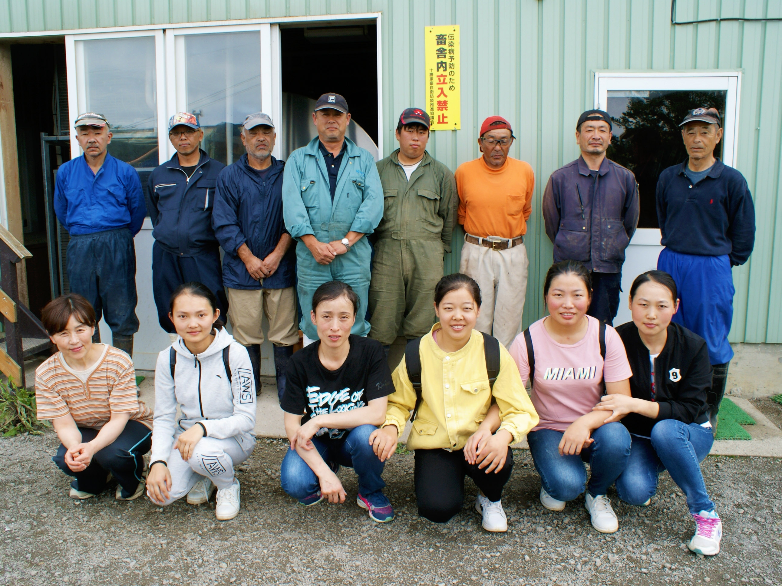 アンビシャスの社員と社員寮です。社員は仲が良く、いつも楽しく作業をしています。敷地内に設置された社員寮には、生活に最低限必要な家電を完備しているので住まいの心配は要りません。設置されている家具・家電はTV、冷蔵庫、洗濯機、ベット、ガスコンロなど。着替えなど身の周りの物だけ持ってくればすぐに生活が始められます。